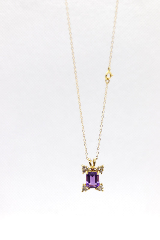 Anhänger aus 14 Karat Amethyst im Smaragdschliff mit Diamanten. Diamant-Cluster-Stern und 16-Zoll-Rolo-Halskette