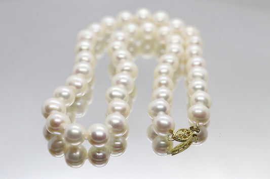 Große Süßwasser-Zuchtperlen aus 14-karätigem Gold. 15 Zoll lang. Geknoteter Strang.