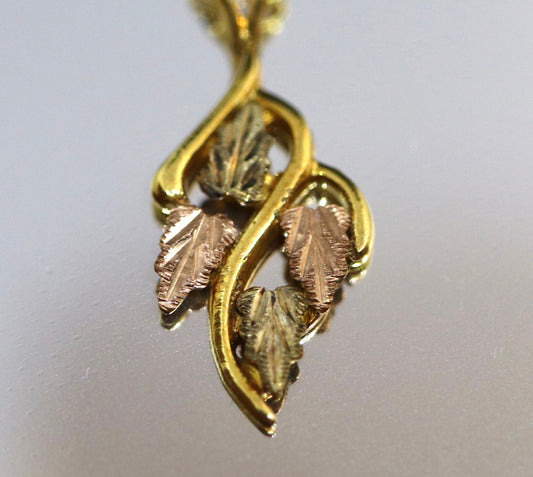 Black Hills Blattgold-Zweig-Halskette. 10 Karat mehrfarbiges Black Hills Gold