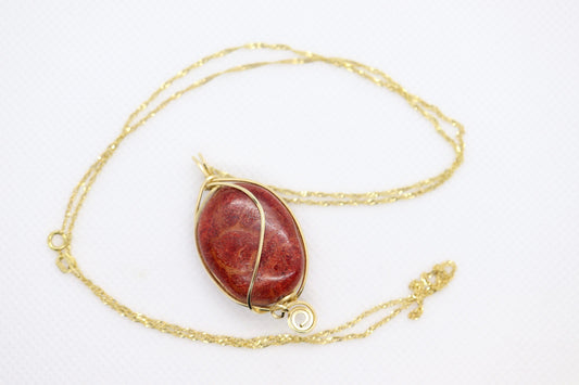 Roter Achatstein mit Draht umwickelt, 14 Karat. 14-karätige gedrehte Panzerkette mit 24-Zoll-Kette