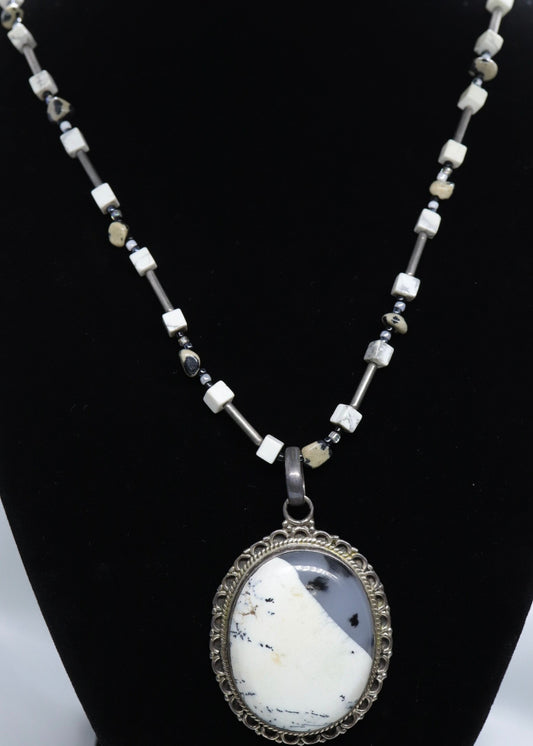 Dendriten-Opal-Achat-Sterlingsilber-Halskette und Anhänger. M. (28/75)