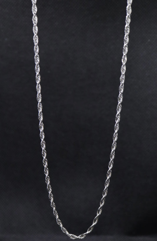 Halskette aus 14-karätigem Seil. PERU 14k Weißgold Hohlseil-Halskette. 18 Zoll 2,5 mm breit