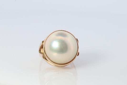 TASAKI Ring. Genuine 14k MABE Pearl Solitaire. Large Mabe pearl 14k yellow gold