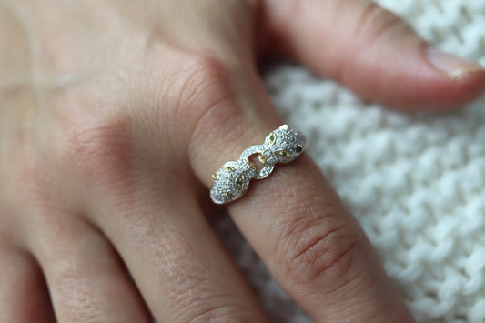 14-Karat-Panther-Leopard-Jaguar-Gepard-Diamantring. Besetzt mit einem Diamant-Double-Piving-Panther-Circle-Band.