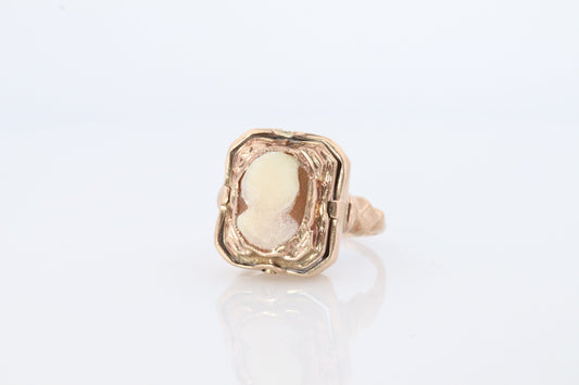 Wendering aus 10 Karat Onyx und Kamee. Viktorianisches Medaillon / Reverso-Ring. Reverso-Siegelring aus 10-karätigem Gelbgold.