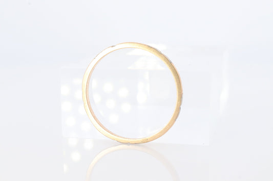Minimalistischer Vintage-Bandring aus 14 Karat Gelb-Weißgold. Moose Tracks Ring mit minimalistischem Gravurmuster. Dünner Ring.