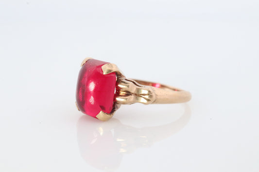 Vintage Rubinring. 10-Karat-Gelbgold-Zuckerhut-LC-Cabochon-Rubin. Großes Rubin-Solitärband für Damen.