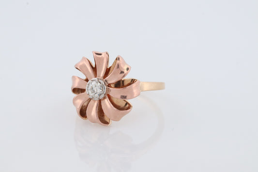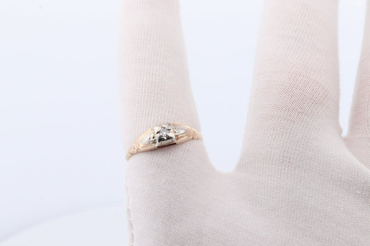 Belcher-Set Diamant 10k Belcher-Ring. Belcher viktorianischer Krappendiamantring Buttercup-Diamant