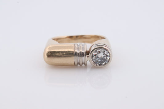 Flacher Solitär-Siegelring aus 14 Karat Diamant. 0,60-ct-Diamant-Lünette, eingefasst in Siegelband. Pinky-Ring. Großer Diamant-Solitär.