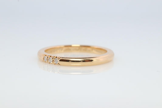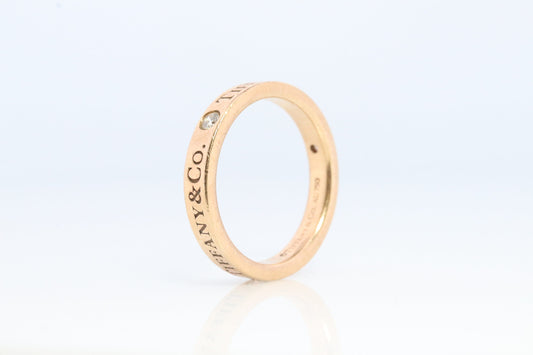 18k Tiffany and Co. band. 18k Tiffany Company Diamond wedding band. 18k Rose Gold Three diamond Bezel Vintage Tiffany & Co band.
