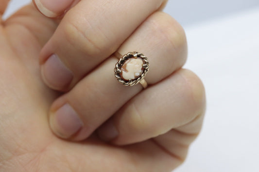Cameo carved shell 10k signet ring. Vintage 10k Yellow gold Signet ring or Pinky Pinkie ring st(40/70)
