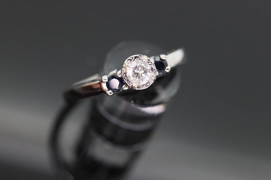 Diamond Sapphire ring. 14k White Gold Diamond Sapphire Solitaire. Trilogy Trio Triple Sapphire Diamond Engagement ring st(133)