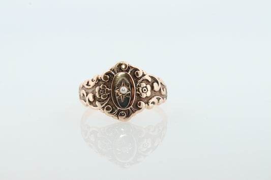 10k Victorian Pearl Seed ring. 10k Gold Victorian Carved Ornate ring. Antique Pearl ring.