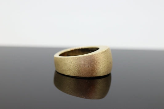 Gebürstetes breites gewölbtes Band aus 14-karätigem Gelbgold. Italienisches 14-karätiges DOME-Texturband. st(167)