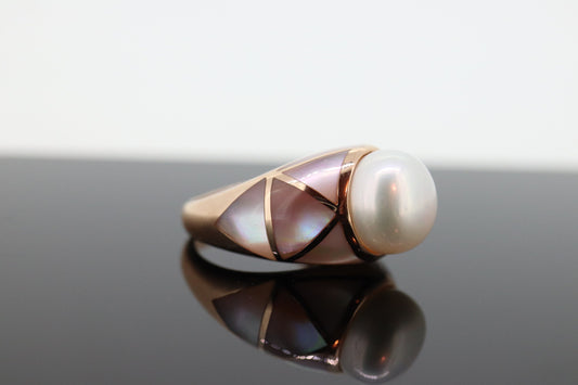 14k großer Mabe- und MOP-Ring. Ring aus 14-karätigem Roségold mit Perlmutt-Inlay und Perlen-Solitärring. M(31-1)