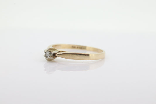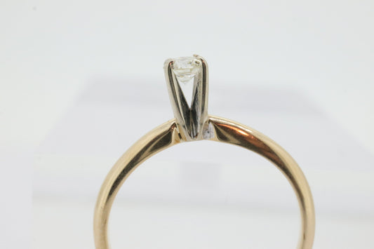 14-Karat-Solitärring mit rundem Diamant. Zierlicher Verlobungsring mit Diamant von 0,17 ct. Diamant mit hoher Krappenfassung. st(38)