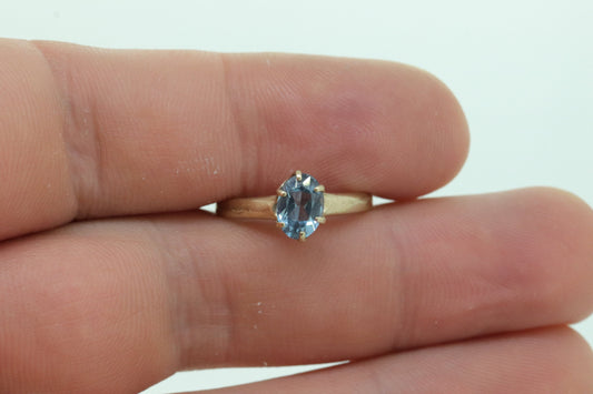 10-karätiger Topas-Solitärring. HANDGEFERTIGTER Solitärring aus 10-karätigem Gelbgold mit blauem ovalem Topas. st(42)