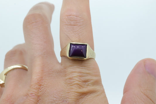 10k SUGILITE Lila Lünettenring. Antike gravierte 10-karätige rechteckige Sugilith-Lünette in Lila, eingefasst in einen schweren Schaft. SZ 11 5,1 Gramm
