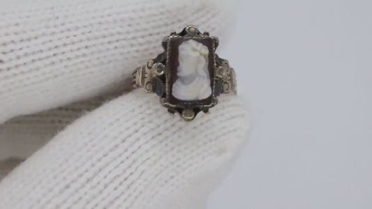 Victorian Cameo carved shell 10k signet ring. Antique 10k Rose gold Signet ring (st57)