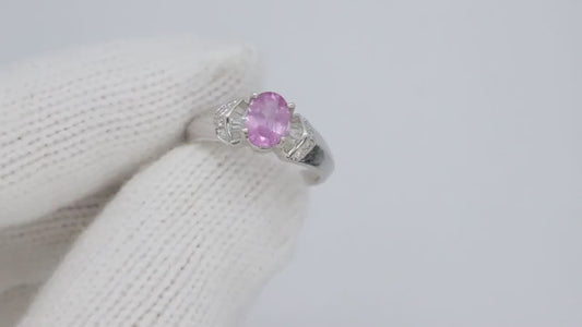 Oval Pink Sapphire Solitaire. 14k white gold with diamond melees st195