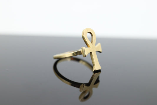 14k ANKH-RING. Ägyptischer Kreuzring aus 14 Karat strukturiertem Gelbgold. st(84)
