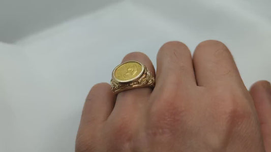 14-Karat-Gold-BAMBUS-Ring mit einer 1985er Panda 1/20 999 feinen 24-Karat-Goldmünze mit Bambus-Lünette. st(414/11)Normaler Preis $1,589.00 USDNormaler PreisGrundpreis pro-