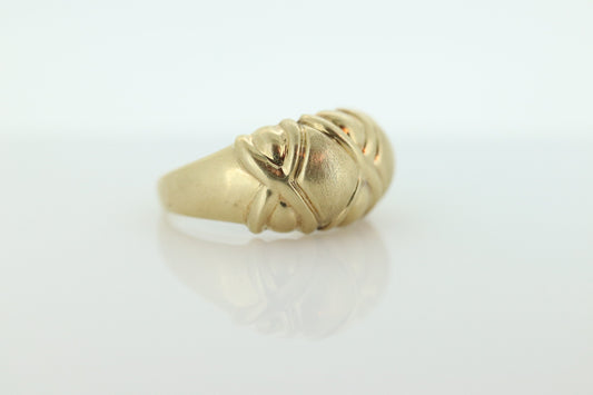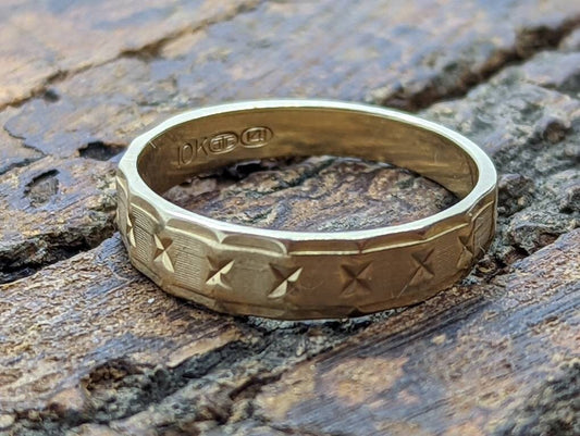 10k breites, X-geprägtes, verziertes Kuppelband. Strukturiertes Vintage-Prägedesign. 10mm SZ7 st (97/75)Normaler Preis $245.00 USDNormaler PreisGrundpreis pro-