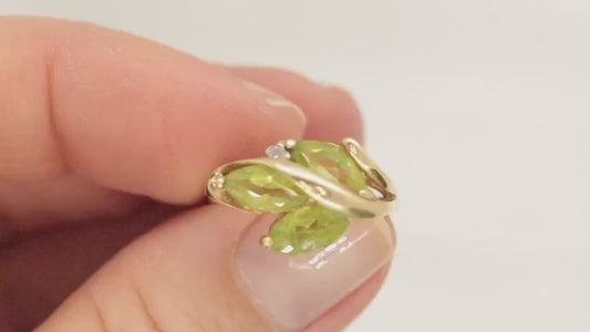 10-Karat-Clusterring mit Peridot-Marquise-Blattmotiv. Peridot-Diamantring.Normaler Preis $199.00 USDNormaler PreisGrundpreis pro-