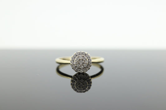 Erhöhter Ring mit Diamant-Gänseblümchen-Cluster. 10 Karat Gelbgold mit runder Diamant-Cluster-Anordnung. st(47)Normaler Preis $229.00 USDNormaler PreisGrundpreis pro-