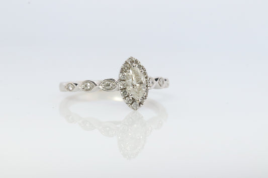 Marquise-Diamant-Solitär-Halo-Ring. 14 Karat Weißgold HALO Diamant Petite 0,20 ct Verlobungsring st(161/00)Normaler Preis $575.00 USDNormaler PreisGrundpreis pro-