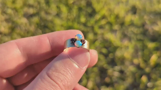 10k Victorian Opal and Garnet ring. 10k Gold Victorian claw opal ring. Wide Cigar BAnd. st(196)