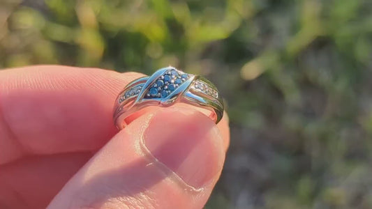 10k Blue Diamond Pave Encrusted Band. BLUE diamond pave band ring. Sz7.25 st (81)