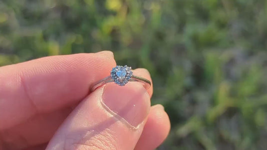 10k Heart Diamond Cut Halo ring. 10k white gold Heart Cut diamond cluster band. Diamond Halo ring. st(86)