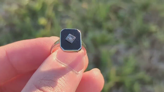 Art Deco Onyx and Diamond Ring. 14k White Gold Rectangle Onyx and Diamond ring. Mourning ring. st(150)
