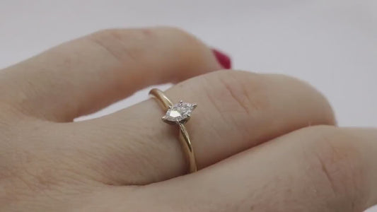 Marquise-Diamant-Solitärring. Petite-Verlobungsring mit 14-karätigem Diamant von 0,18 ct