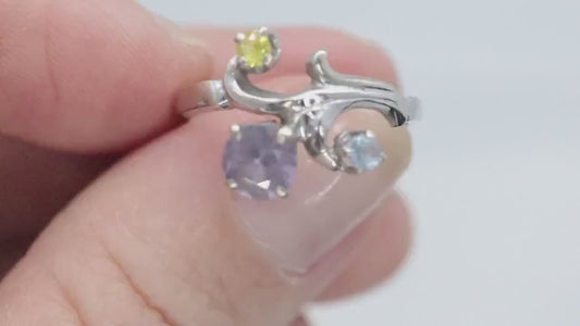 Ring mit blühenden Blumen und Blättern aus 14 Karat. Topas-Blumenring mit mehreren Edelsteinen.
