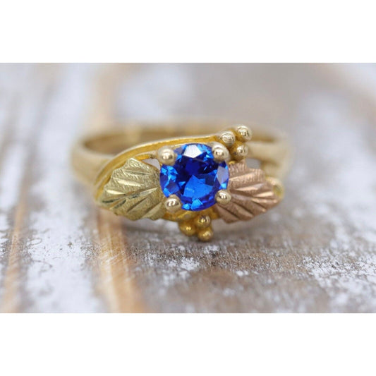 Black Hills Gold Ring wunderschöner blauer SAPHIR. 10 Karat mehrfarbiges Black Hills Gold