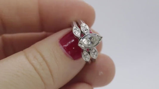 Hochzeitsset aus 14-karätigem Marquise-Diamant (0,48 ctw). Brautset aus 14-karätigem Weißgold mit einem Diamanten. st403