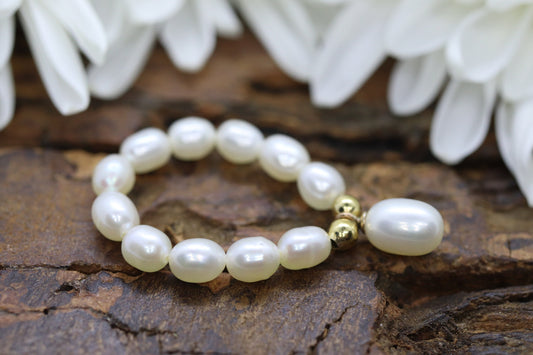 Dehnbarer flexibler Perlenring. Stretchband aus Süßwasserperlen. 14k Perlenring. M(13/41)