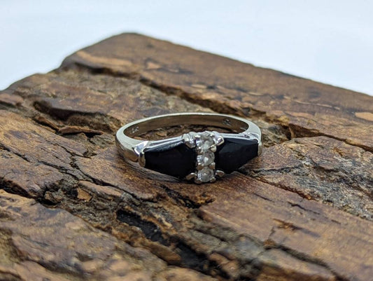 10-Karat-Onyx- und Weißtopas-Band. 10-karätiger Doppelring aus Onyx und Topas. M(93/15)