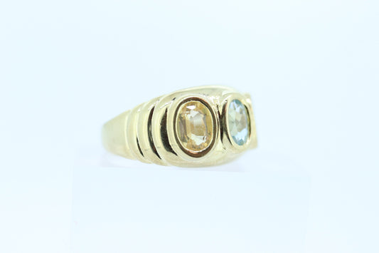 Mehrfarbiger Edelsteinring. Ring aus 14-karätigem Gelbgold. Bubble Granat Citrin Topas. Lünette mit Edelsteinen besetzt. st(99/11)