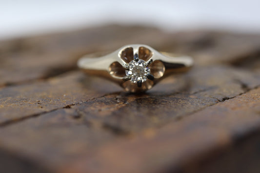 Antiker filigraner Belcher-Diamantring aus 14 Karat. 1/4 Karat viktorianischer Krappendiamantring für Damen, Buttercup-Diamant, Gr. 8 st (126/50)