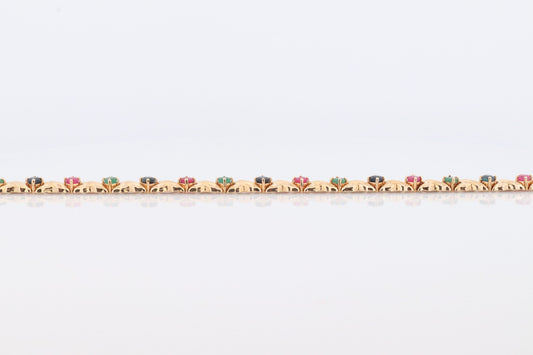 Mehrfarbiges Edelsteinarmband aus 14 Karat. Schweres XOXO Round Ruby Emerald Sapphire Flower Cluster Arrangement Kiss Hug Armband. (st220)