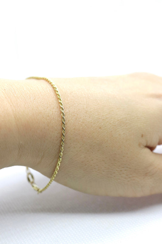 Armband aus gedrehtem Seil aus 14-karätigem Gold, 1,5 mm, 1,7 Gramm. Goldgeflochtenes Seilarmband