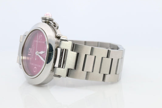 Vintage Cartier PASHA C Automatic 2324. Rare RED Cherry Bordeaux Dial.