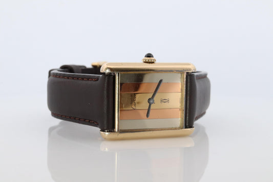 Vintage Must de Cartier Trinity Tank Watch. Large ARGENT Tricolor Windup Tank