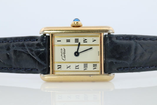 Vintage Must de Cartier Tank Pillar 5057001 Dial Watch Vermeil ARGENT Small Tank