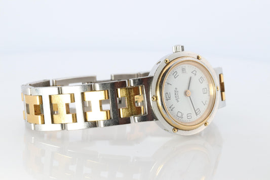 Genuine HERMES Stainless Steel 24mm Round Clipper Quartz Watch White Dial.