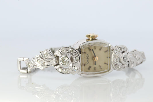 Omega watch. Omega Platinum and Diamond manual Antique Ladies wristwatch.