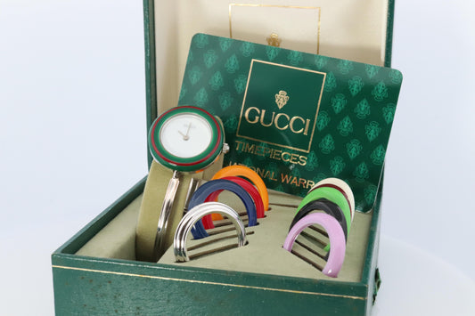 Vintage GUCCI Quartz 11/12.2 Watch Bezels Gucci Ladies Silver Bangle wristwatch